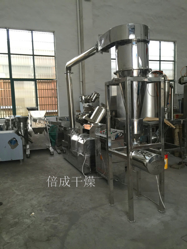 該機廣泛用于制藥、化工、食品行業(yè),全套機器有主機、輔機、除塵器、電控箱四個(gè)部分組成,均可粉碎油脂含量達25%以?xún)鹊南阈亮?、油性料,同時(shí)也可以粉碎機纖維含量比較高的中草藥。粒度用篩網(wǎng)控制,常溫下過(guò)程生產(chǎn)連續進(jìn)行。具體粉碎物品有辣椒、胡椒、黑胡椒、白胡椒、綠胡椒、肉桂、孜然、草寇、大紅袍花椒、桂皮、紅寇、紅曲米、豆蔻、紅麻椒、蒜香、八角、丁香、砂仁、香葉、草果、姜黃、干姜、白芷、小茴香、大料、油性物料及纖維性物料等物料,不需要粗粉碎可直接投料,產(chǎn)量大,不變色,維持物料的原有物理化學(xué)特性。