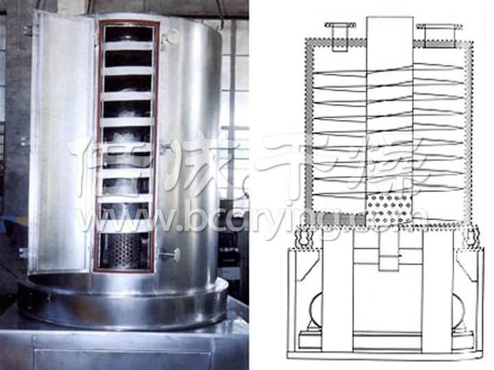 ●物料沿螺旋床自下而上作圓周運動(dòng)的同時(shí),自身也產(chǎn)生跳躍,從而增加了物料與熱風(fēng)的接觸,增強了干燥效果。
