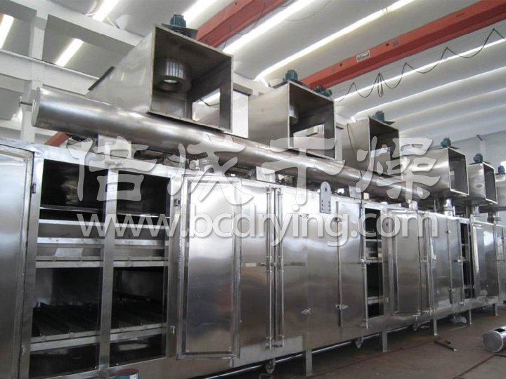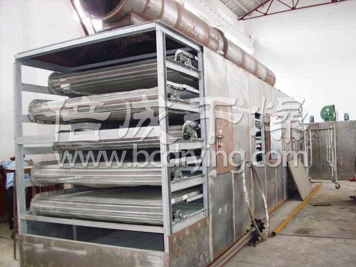 DW系列多層帶式干燥機是成批生產(chǎn)用的連續式干燥設備,用于透氣性較好的片狀、條狀、顆粒狀物料的干燥,對于脫水蔬菜、催化劑、中藥飲片等類(lèi)含水率高、而物料溫度不允許高的物料尤為合適;該系列干燥機具有干燥速度快、蒸發(fā)強度高、產(chǎn)品質(zhì)量好的優(yōu)點(diǎn), 對脫水濾餅類(lèi)的膏狀物料, 需經(jīng)造?;蛑瞥蓷l狀后方可干燥。