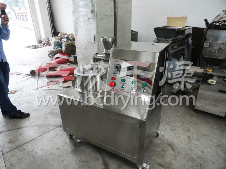 粉體與粘結劑濕法混合--擠條--離心拋園,完成制丸。